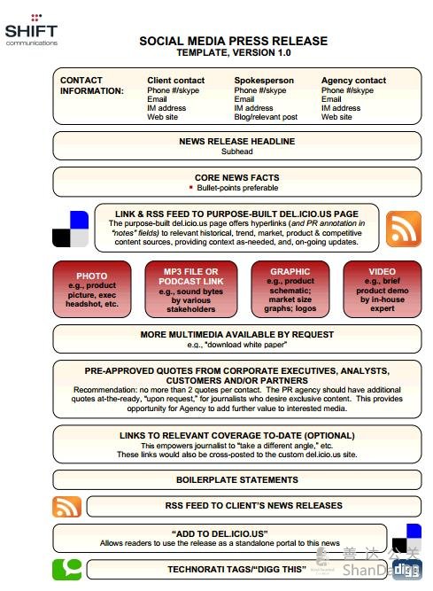 社交媒體新聞稿 (Social Media News Release, SMNR) 是由Shift Communications 的Todd Defren最先提出來的。其實更確切地描述應是“社交媒體友好的新聞稿”。這種新聞稿貌似復雜,包含大量多媒體內容以及相關資訊鏈接,如公司其他新聞稿和專家引述等。這種對格式的強調使得許多人望而卻步,這種現象時至今日依然存在。