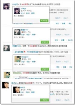 圖1:金山操縱“僵尸粉”給360用戶留言