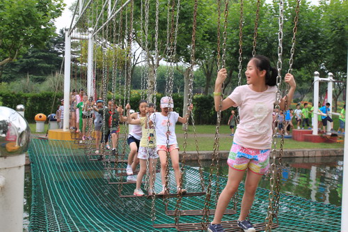 在為期3天的實踐活動中,學員們在上海“東方綠舟”訓練營教官的指揮帶領下,參加了各種拓展活動,其中步調一致、劃龍舟等項目更是體現了團隊合作精神,增強了團隊意識,培養了團隊協作能力。登上按1:1的比例精心仿造的航空母艦,參觀了國家安全教育館、武器展覽大廳,看到了各種各樣的高新技術武器模型,學員們無不驚嘆高科技裝備的精良和先進。在“智慧大道”上,幾十位古今中外的科學家、學者、發明家的成長歷程都激發著每個孩子熱愛科學,熱愛學習,勇攀科學高峰的志向。“生活實踐區”是學員們住宿的地方,大家雖沒去過國外,卻在這里看到了仿造的西班牙、荷蘭、希臘、英國公寓、美國木屋等等,這里真是一個奇妙無比的小小“地球村”。
