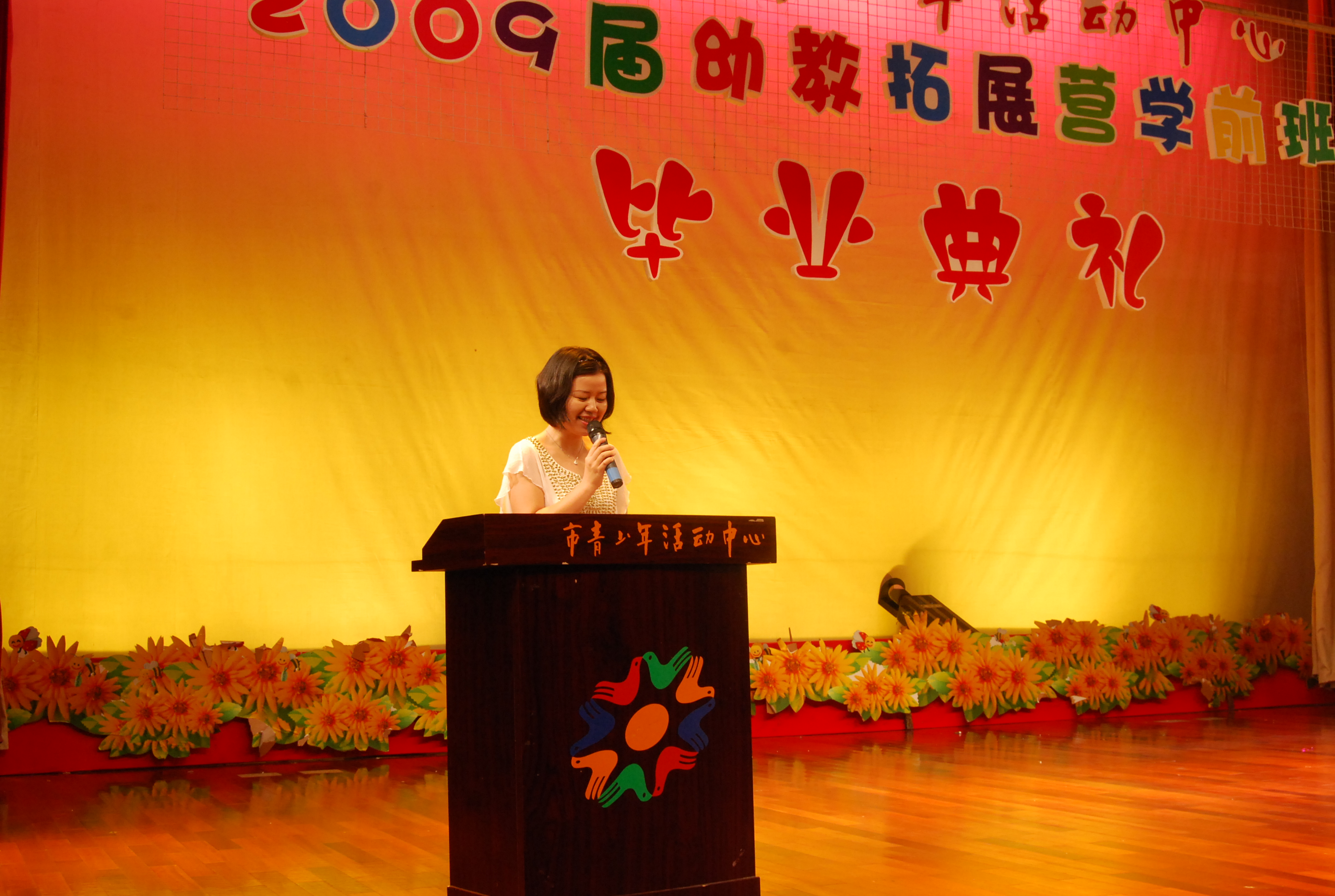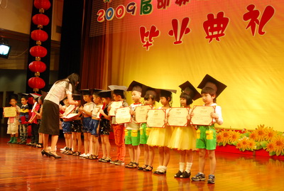 6月25日下午,活動中心2009屆幼教拓展營畢業典禮在觀演廳隆重舉行活動中心的領導、老師、各位學員及家長共聚一堂,祝賀孩子們圓滿完成一年的幼教拓展營學習!