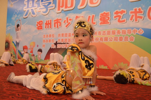8月14日,溫州青少年活動中心少年兒童藝術團公益巡演來到了奧康集團,為300多名外來民工子女舉行“共享陽光•快樂成長”公益演出。