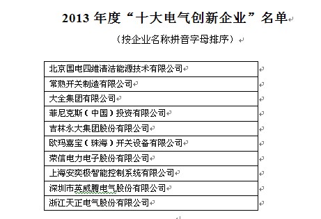 由中國電工技術學會主辦的“2013第八屆中國電工裝備創新與發展論壇”于2013年6月22~23日在北京舉行,其主題為“電機系統節能技術與能效管理,智能微電網系統與技術”,來自全國產業界和科技界的代表180多人參加了本次盛會。作為此次盛會的主題板塊之一的——2013年度“十大電氣創新企業及十大電氣創新產品”發布活動,,向行業公布了包括“十大電氣創新企業”、“十大電氣創新產品”和“十大變頻器創新產品”的研究碩果。