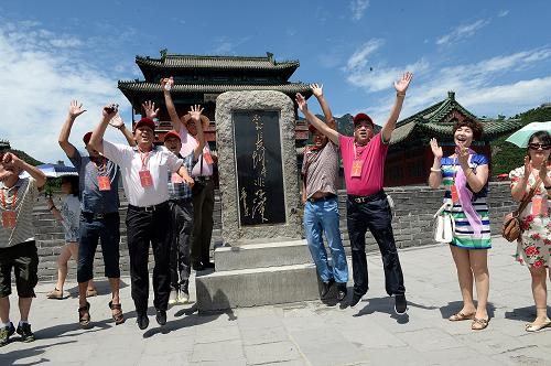 7月28日,前來(lái)參觀考察的勞動(dòng)模范在北京居庸關(guān)長(zhǎng)城上留影。當(dāng)日,首批共200名全國(guó)勞動(dòng)模范齊聚北京、北戴河集中休養(yǎng),正式啟動(dòng)2013年全國(guó)勞模休養(yǎng)活動(dòng)。首批勞模休養(yǎng)活動(dòng)從7月27日持續(xù)至8月2日,除在北京參觀考察外,勞模們還將前往北戴河度過(guò)一個(gè)難忘的假期。中華全國(guó)總工會(huì)于7月至11月期間,組織5000名勞模分33批前往北戴河、青島、廈門等11個(gè)休養(yǎng)基地“度假”。這是全國(guó)總工會(huì)開展勞模休養(yǎng)活動(dòng)以來(lái)人數(shù)最多的一次。新華社記者 何俊昌 攝