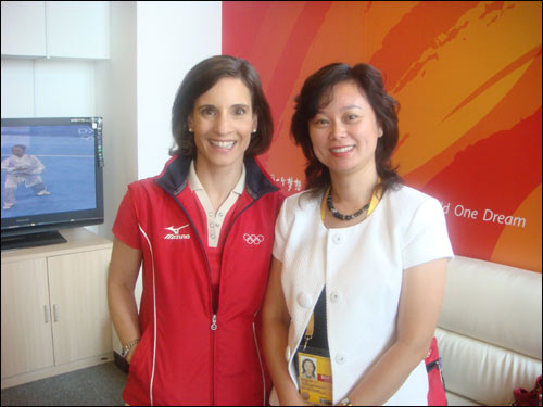 國際奧委會公關總監吉賽爾·戴維斯與偉達公關(中國)公司董事孫玉紅