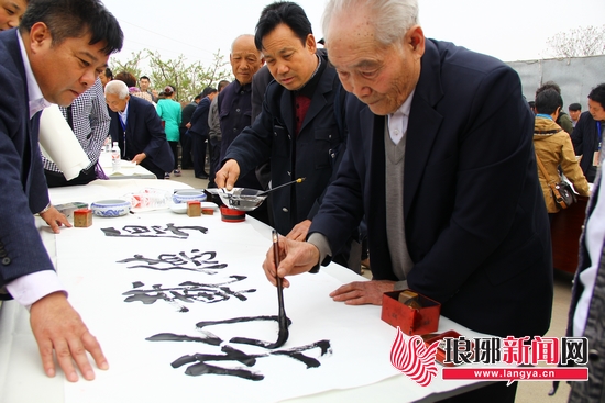 活動舉辦之期正逢聞名全國的“魯南桃鄉”、“臨沂城后花園”李官鎮3.3萬畝桃花盛開的季節,花香伴墨香格外引人入勝。書畫家們現場激情煥發,揮毫潑墨,丹青頌盛世、翰墨書豪情。當天,上千名市民慕名而來,將提前備好的宣紙攥在手中,耐心排著長隊,等待書畫家為自己寫一幅祝福的字畫。正在排隊的李先生告訴記者,他是從市里大老遠趕來的,就想找位書法家求一幅有關家庭幸福的字,“聽說今天來的都是大家,所以就專門來求張字掛在家中,增添和睦的氣氛。”“我的姥姥今年90周歲了,為了祝愿她能長命百歲,我想請書法家為姥姥寫個大‘壽’字作為今年的生日禮物。”市民劉女士歡喜地說。