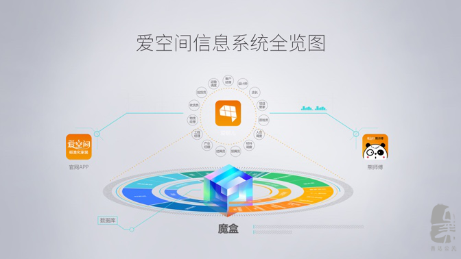 魔盒不是愛(ài)空間的一個(gè)具象產(chǎn)品,而是對(duì)19個(gè)系統(tǒng)和3個(gè)APP的統(tǒng)稱(chēng)。它是愛(ài)空間所有系統(tǒng)的中央處理器,是實(shí)現(xiàn)裝修全流程信息化管理的“最強(qiáng)大腦”,其全面打通了客戶端、工人端、企業(yè)管理端等所有環(huán)節(jié)。用戶端-愛(ài)空間APP是省心裝修的“神器”、產(chǎn)業(yè)工人端-熊師傅A(chǔ)PP是工人師傅的工作管理全能“助理”、運(yùn)營(yíng)管理端-愛(ài)聊兒APP是全服務(wù)鏈14個(gè)職能角色(設(shè)計(jì)師、項(xiàng)目管家、工程經(jīng)理等)的“超級(jí)工作臺(tái)”。魔盒系統(tǒng)的誕生,實(shí)現(xiàn)了移動(dòng)互聯(lián)時(shí)代下,用一部手機(jī)搞定裝修全過(guò)程,真正讓裝修變得透明,高效,簡(jiǎn)單,靠譜。