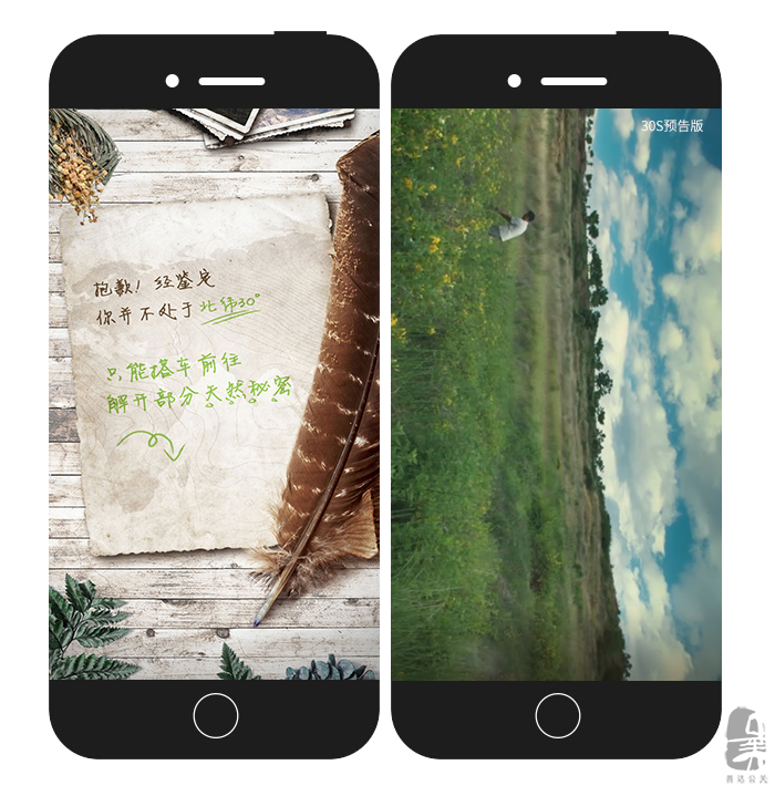 視頻《僅在北緯30°可見的風景》在投放上,顛覆了以往單純的硬廣投放模式。視頻完整版120s僅限北緯30°地區觀看,而非北緯30°地區只投放預告版30s