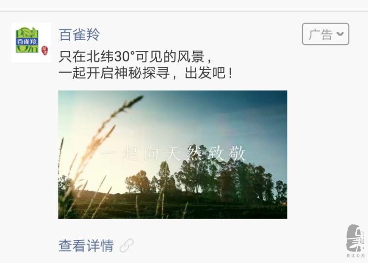 品牌借此強化了受眾對百雀羚和北緯30°天然產地強關聯度的認知。
