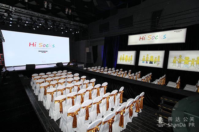 率先提出的“Hi Socks”主題,簡明中心,又多次精磨后,七彩匯聚,成為發布會一大風景。