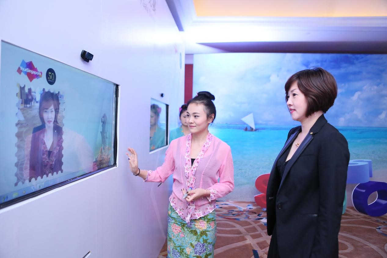 禮儀帶領嘉賓電子拍照簽到,照片做為見證新加坡旅游局50周年的紀念