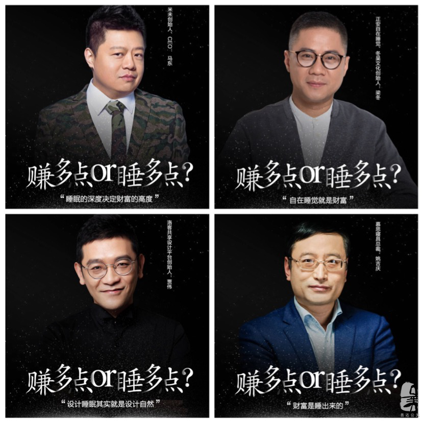 活動現場邀請了中國睡眠研究會秘書長左和鳴,慕思寢具總裁姚吉慶,洛客共享設計平臺創始人賈偉,米未創始人、CEO馬東作為論壇的主咖,以及另一位「娛樂圈最會說話的男人」梁冬,等嘉賓共同深入探討“睡眠與財富”的話題。挖掘睡眠與財富、睡眠與設計的內核所在。