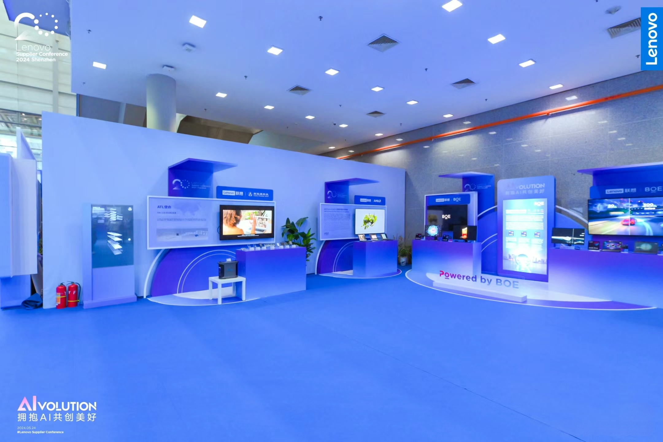 設置多個科技感十足的展位,每個展位都根據展示內容設計了獨特的造型和布局,使參觀者能夠直觀地感受到聯想集團的產品魅力和技術實力。