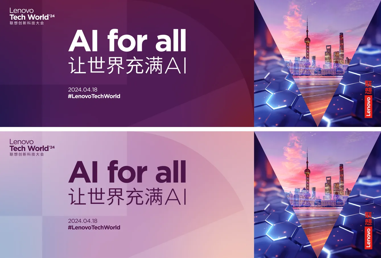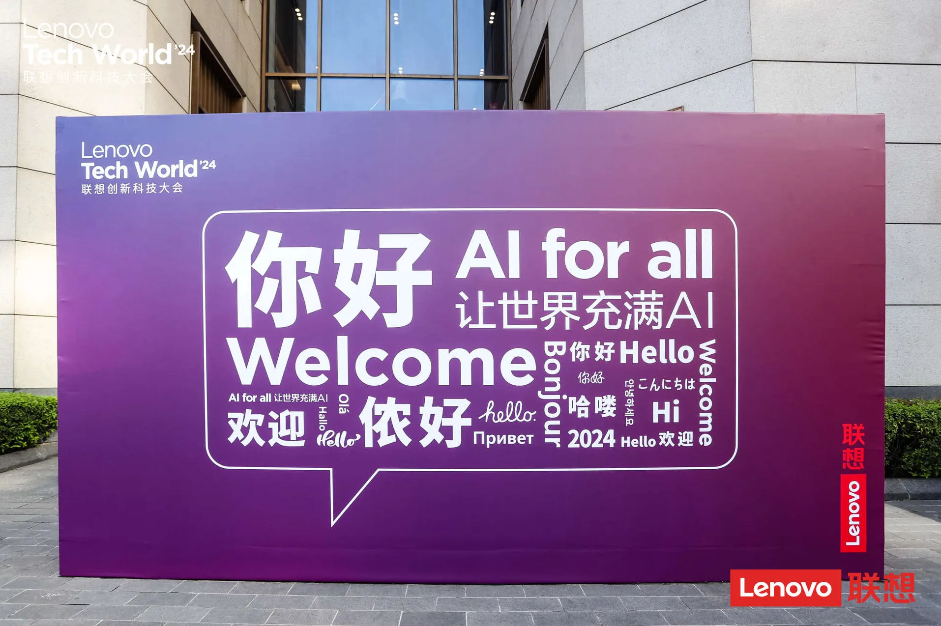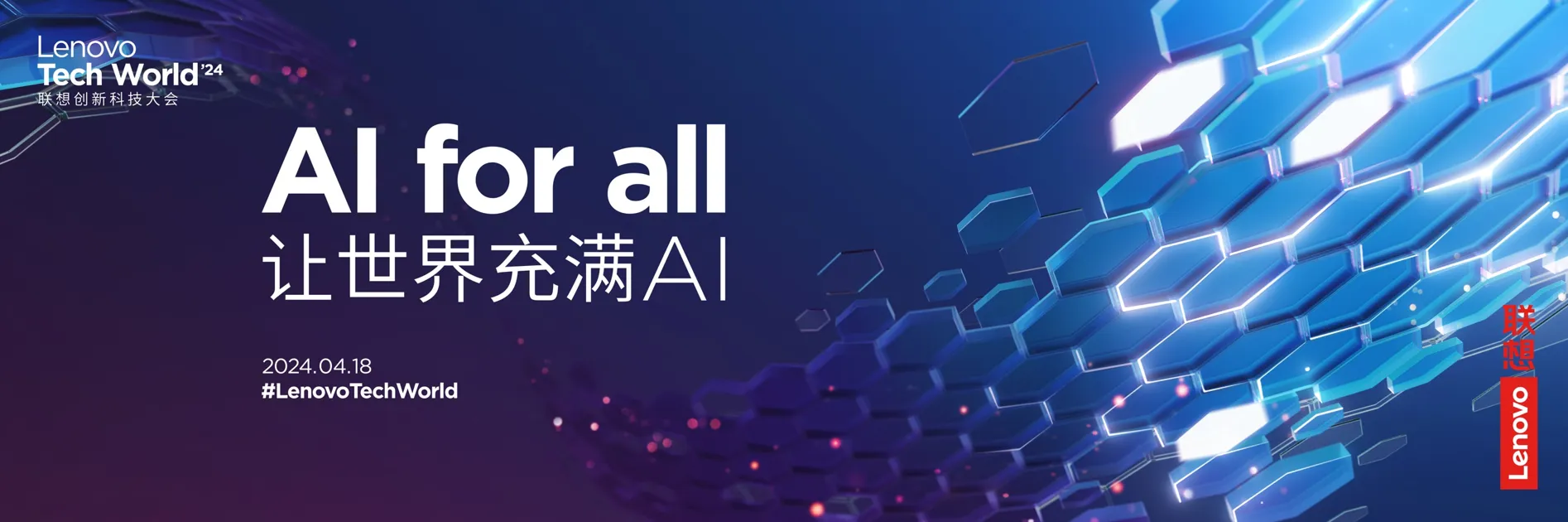 主題明確:大會(huì)以“AI for All, 讓世界充滿AI”為主題,這一主題貫穿整個(gè)活動(dòng)的視覺設(shè)計(jì),通過各種視覺元素和展示形式,向參觀者傳遞了聯(lián)想在人工智能領(lǐng)域的戰(zhàn)略布局和前瞻視野。