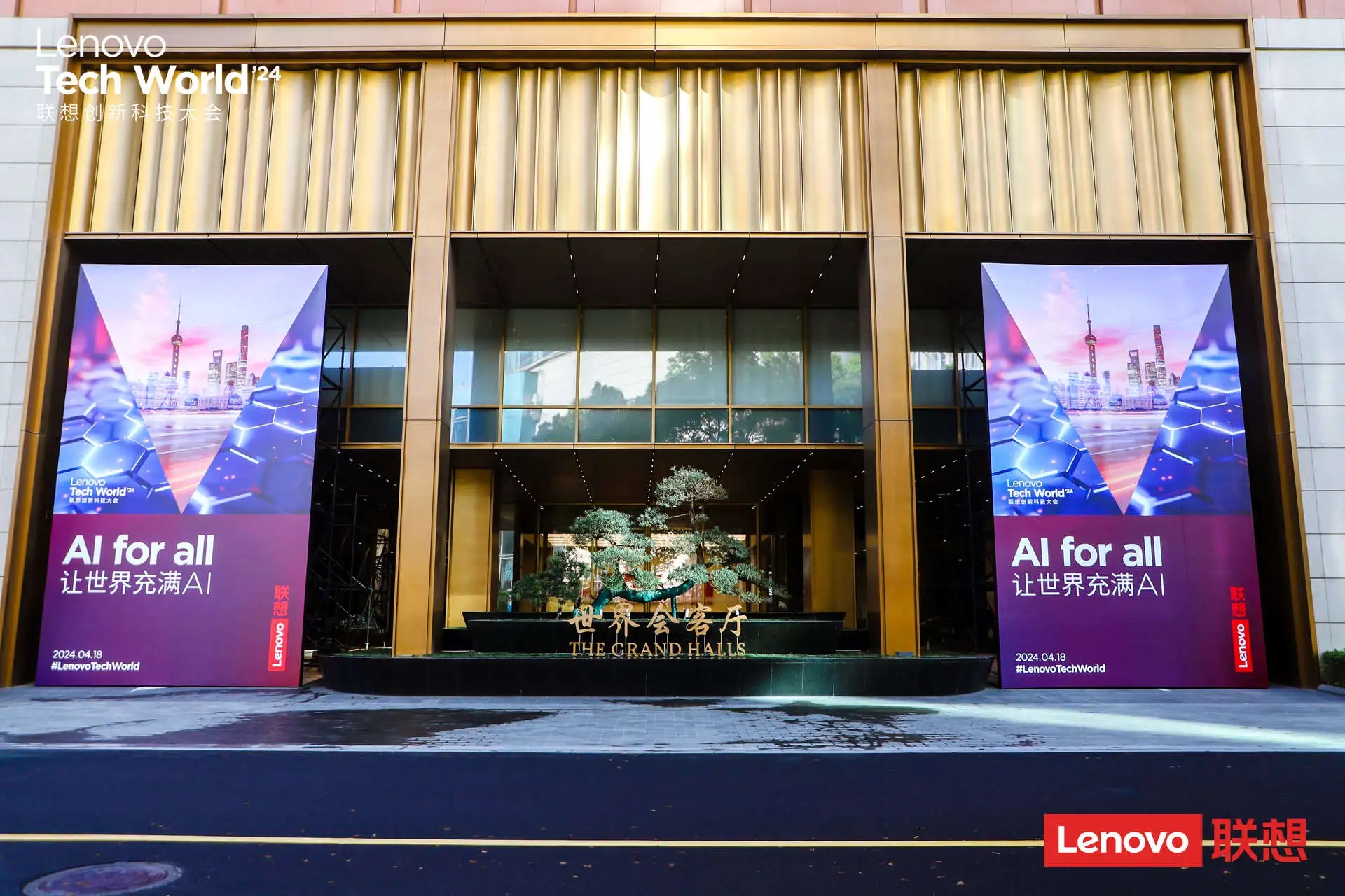 本次大會(huì)選址上海北外灘的“世界會(huì)客廳”,這一選擇不僅凸顯了聯(lián)想的全球視野與格局,更巧妙地將中式美學(xué)設(shè)計(jì)與現(xiàn)代科技完美融合,彰顯了聯(lián)想在全球科技舞臺(tái)上的風(fēng)范和雄心。世界會(huì)客廳的建筑設(shè)計(jì)融合了中西方元素,既保留了傳統(tǒng)中式建筑的典雅風(fēng)韻,又融入了現(xiàn)代設(shè)計(jì)的簡潔大氣,與聯(lián)想倡導(dǎo)的科技創(chuàng)新理念不謀而合,場(chǎng)地內(nèi)的“迎客松”形象更是與大會(huì)的主題“AI for All,讓世界充滿AI”完美契合,象征著聯(lián)想敞開懷抱,迎接來自全球的嘉賓,展示其在AI領(lǐng)域的最新成果和未來愿景。