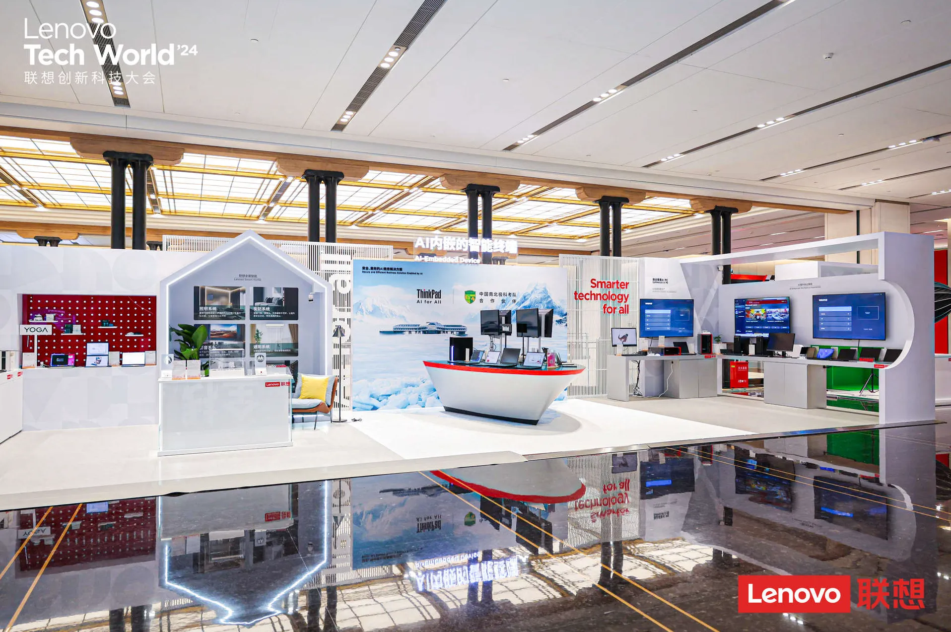 作為五年來首度回歸的線下盛會(huì),聯(lián)想Tech World旨在讓與會(huì)者真正感知到聯(lián)想的AI科技,展區(qū)設(shè)計(jì)通過細(xì)膩的陳列布局、結(jié)構(gòu)借景和建筑語言,不僅兼顧智慧科技體驗(yàn)與場(chǎng)地風(fēng)格,更深刻體現(xiàn)了聯(lián)想作為大國企業(yè)的世界格局。
