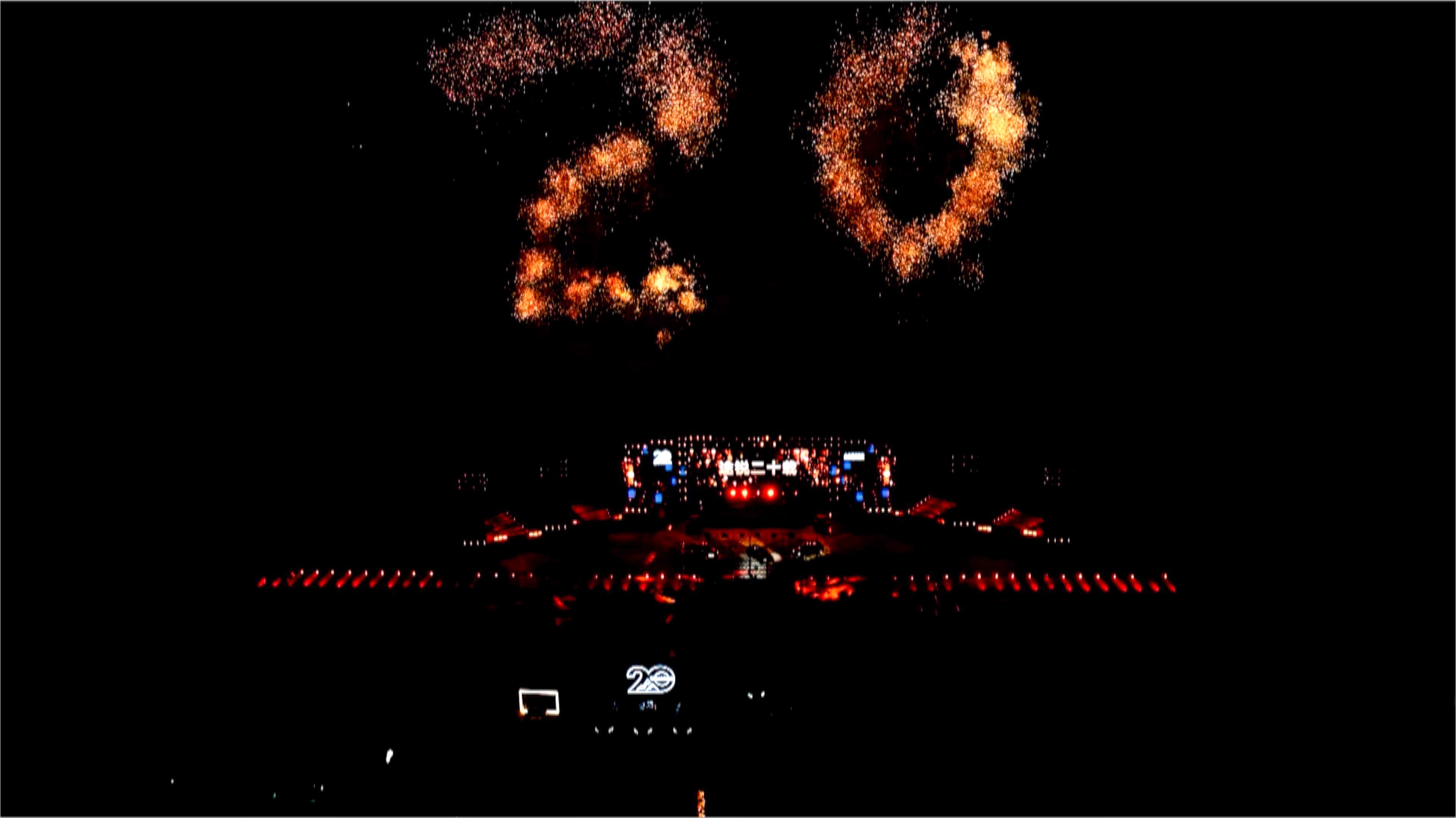 在節(jié)目演出環(huán)節(jié),開場是氣勢磅礴的《太陽鼓》表演,還有精心設計的20周年煙花秀。