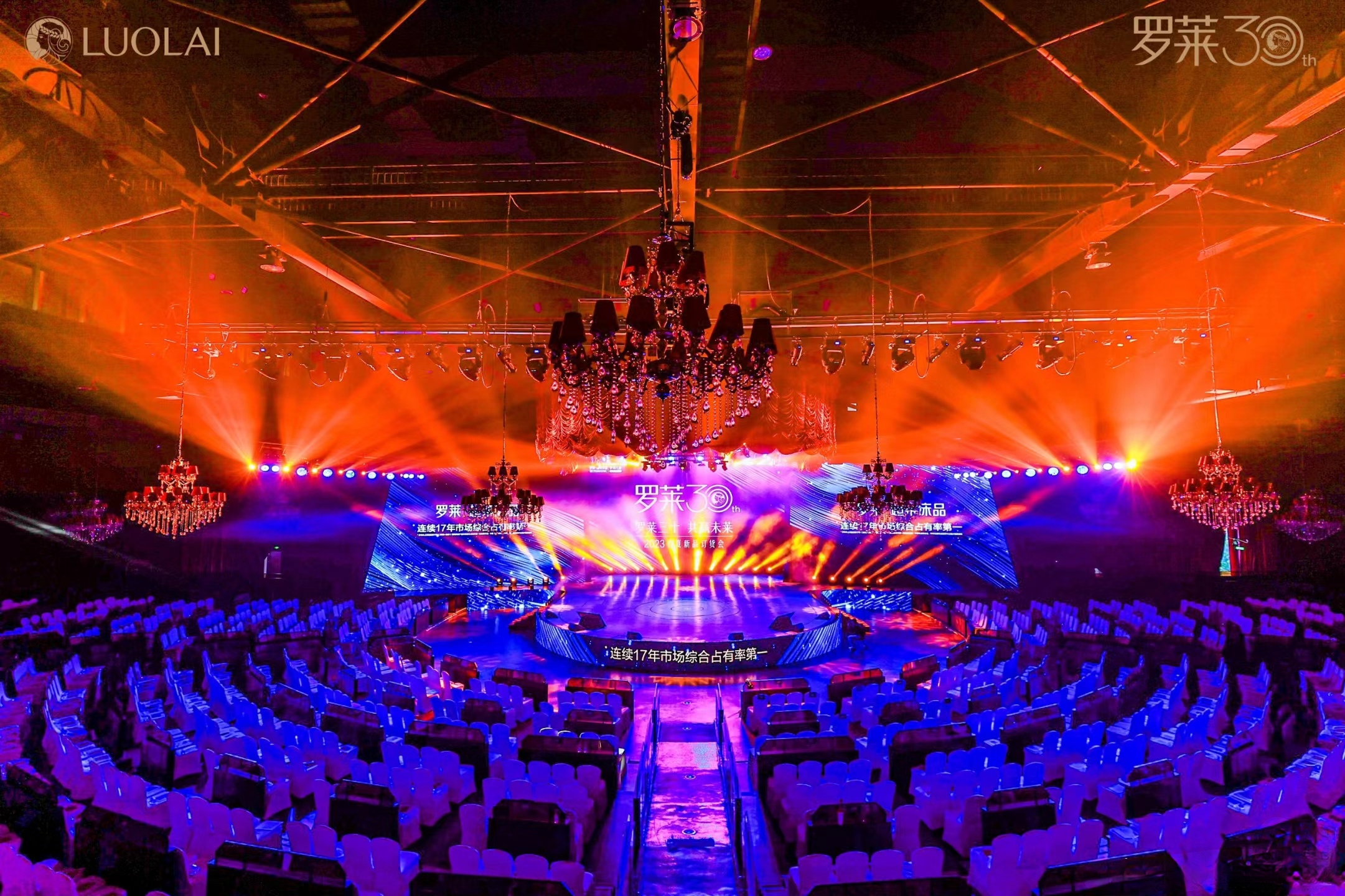 綜上所述,羅萊30周年慶典暨春夏訂貨會活動現場的視覺亮點主要體現在主題鮮明、科技賦能、跨界合作、光影交錯以及明星 助陣等方面。這些亮點共同構成了活動現場的獨特魅力,吸引了眾多參與者的關注和贊譽。
