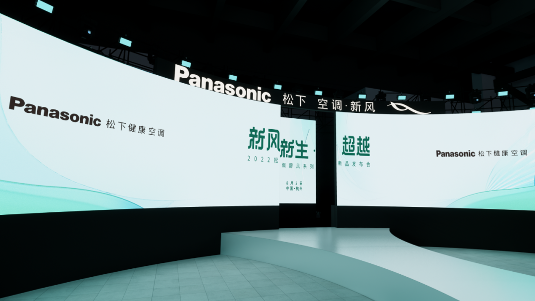 從新品的設計美學出發,從風可感知的藝術形態,以曲線作為本次發布會的主視覺呈現元素。整體構圖以鯨魚尾翼躍出海面擊打起的浪花為靈感,層層遞進的浪花,是浪也似風的形態,寓意新風即將帶來的行業新浪潮,也彰顯松下品牌在行業內新勢所趨。