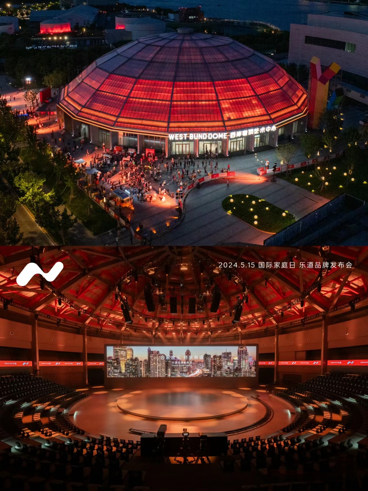 場地選擇:活動選在上海西岸穹頂藝術中心,該場地建筑面積近9000m²,外觀獨特,中心區為無柱圓形空間,挑高約27m,二層設有環形看臺,可容納大量觀眾,為發布會提供了寬廣而獨特的展示空間。