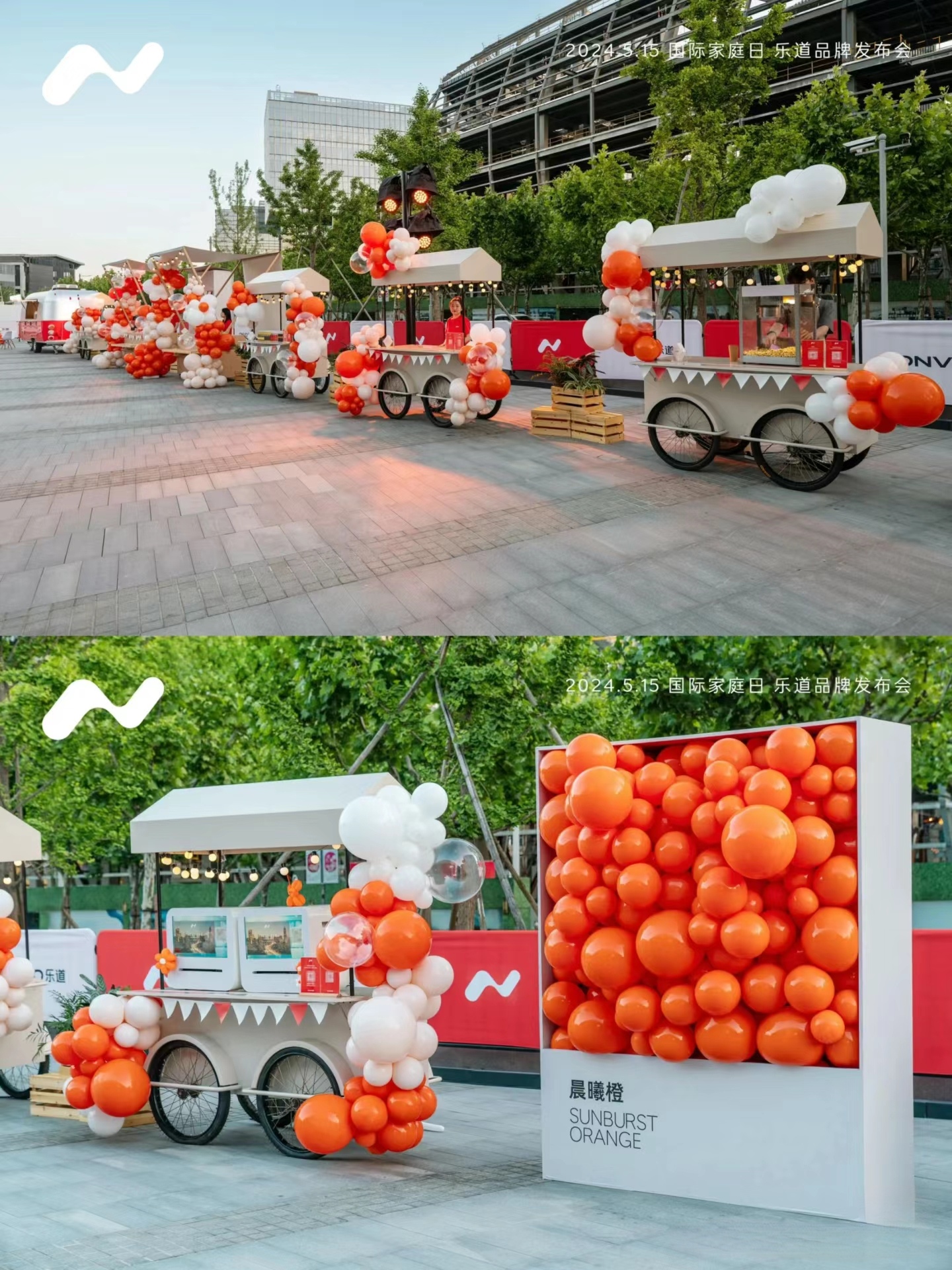 主題色運用:活動現場大量運用晨曦橙色作為主題色,營造出充滿活力、溫馨和歡樂的氛圍。