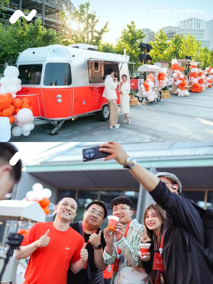 布置風格:整體布置以樂道汽車的主題色晨曦橙為主,寓意日子紅紅火火,與蔚來樂道品牌的誠意滿滿相呼應。現場布置充滿現代感和科技感,與樂道汽車的品牌定位和產品特點相契合。