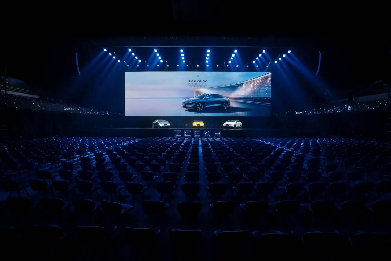 主場設計是本次發布會的重頭戲。舞臺背景采用全LED大屏,能夠根據不同環節的需求變換畫面內容。在極氪007亮相環節,大屏上呈現出車輛從虛擬到現實的轉換過程,讓觀眾仿佛置身于未來世界。此外,舞臺兩側還設置了多個互動展示區,展示了極氪007的智能科技配置和豪華內飾細節,讓觀眾能夠近距離感受這款新車的魅力。