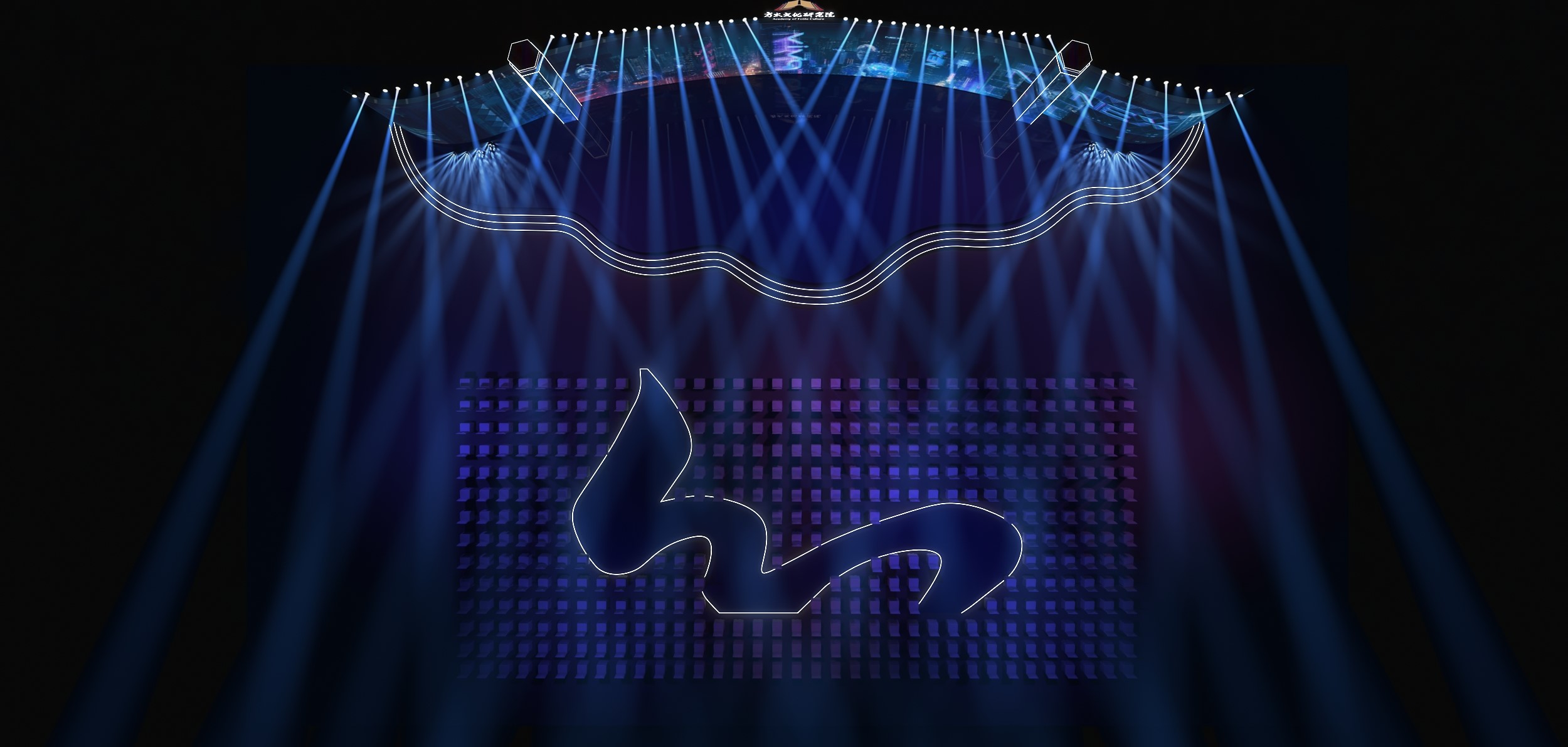 舞臺屏幕采用卷軸樣式,中西合璧,LED屏幕配合視頻制造裸眼3D效果,兩邊舞美設計可延伸為機械臂和航空航天,使古代與現(xiàn)代相融合,文化與科技相碰撞,打造出沉浸式場景互動,整個設計可以與視頻相配合,宣傳方太航天廚房與硬核科技。