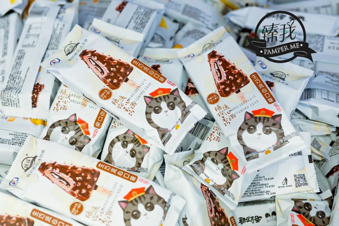 2022年夏,臻我冰淇淋與國內卡通IP吾皇貓再度聯名,推出一款新品——生巧流心口味冰淇淋