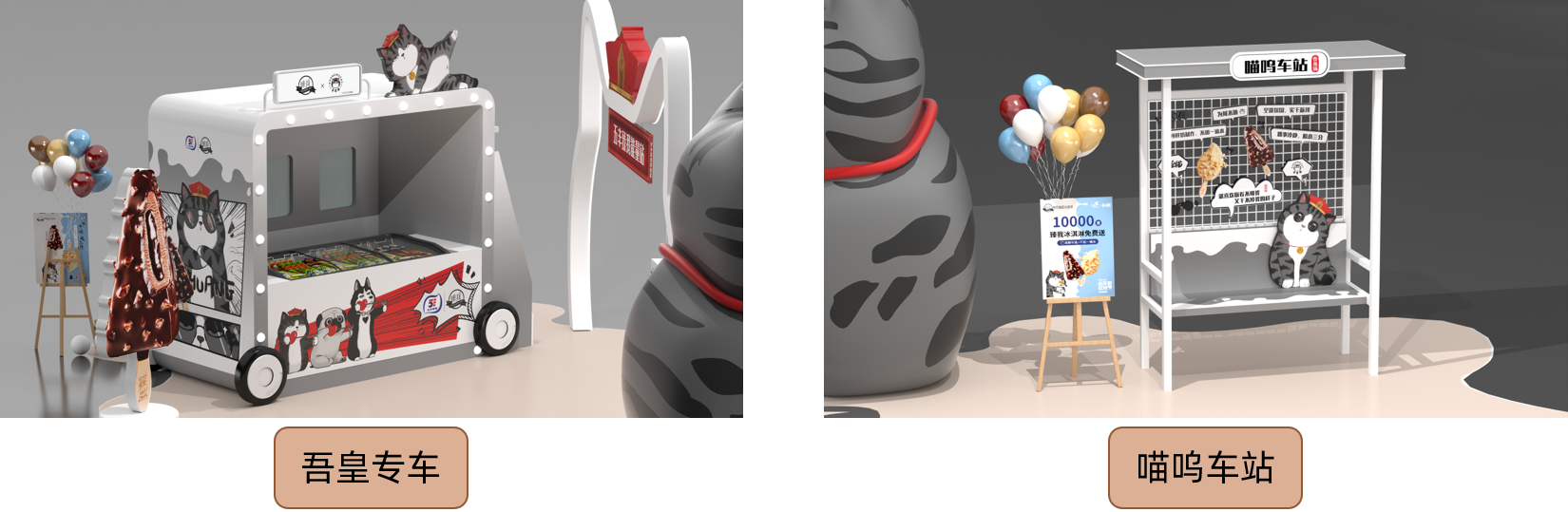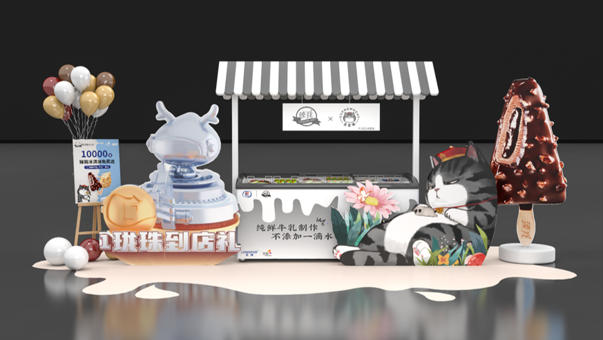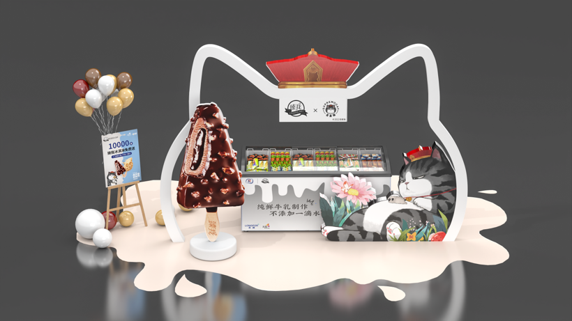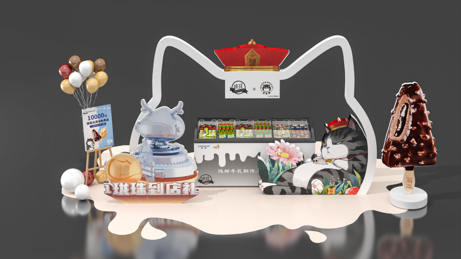 我們以“吾皇專車”的概念包裝本次展位:夏日即將到來,吾皇巡游人間,并給大家帶來他最愛的“臻我冰淇淋”,