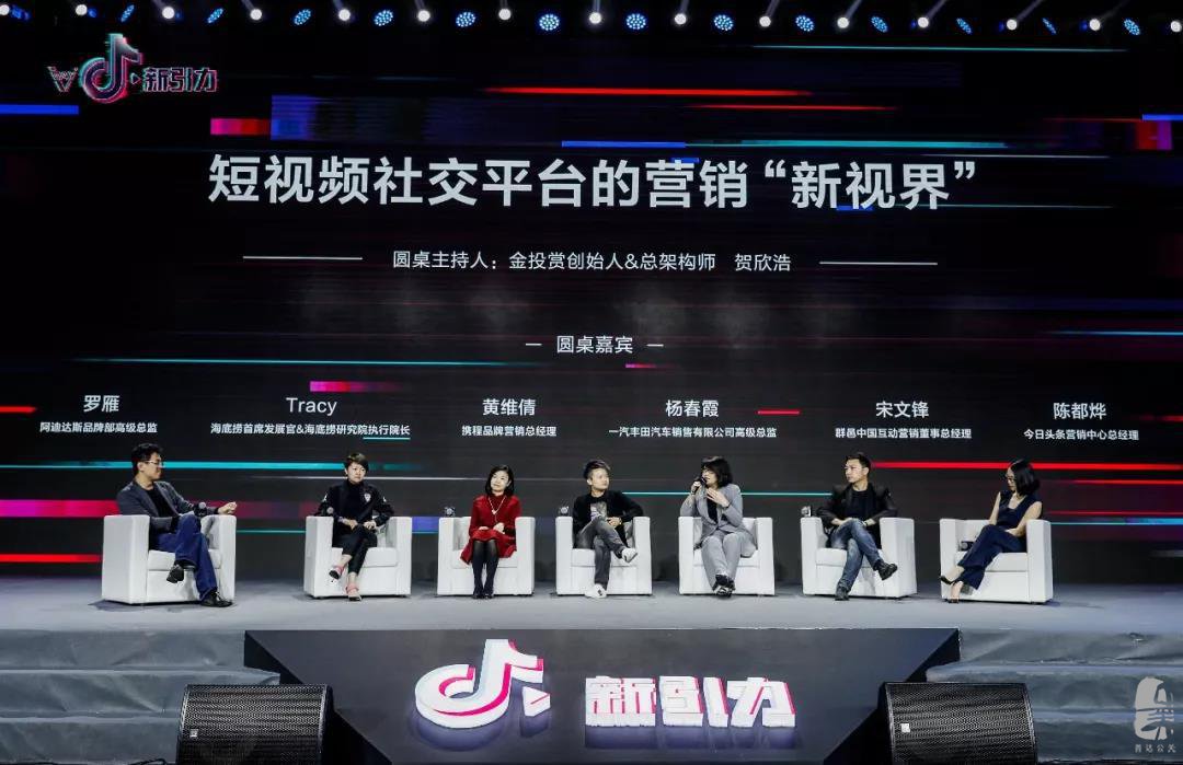 圓桌環(huán)節(jié),大會邀請了金投賞創(chuàng)始人&總架構(gòu)師賀欣浩擔(dān)任主持人,adidas neo 品牌部高級總監(jiān)羅雁、海底撈首席發(fā)展官&海底撈研究院執(zhí)行院長 Tracy、攜程品牌營銷總經(jīng)理 Lafite Huang、一汽豐田汽車銷售有限公司高級總監(jiān)楊春霞、群邑中國互動營銷董事總經(jīng)理宋文鋒、今日頭條營銷中心總經(jīng)理陳都燁作為嘉賓,分享他們在短視頻平臺上的營銷實(shí)踐。