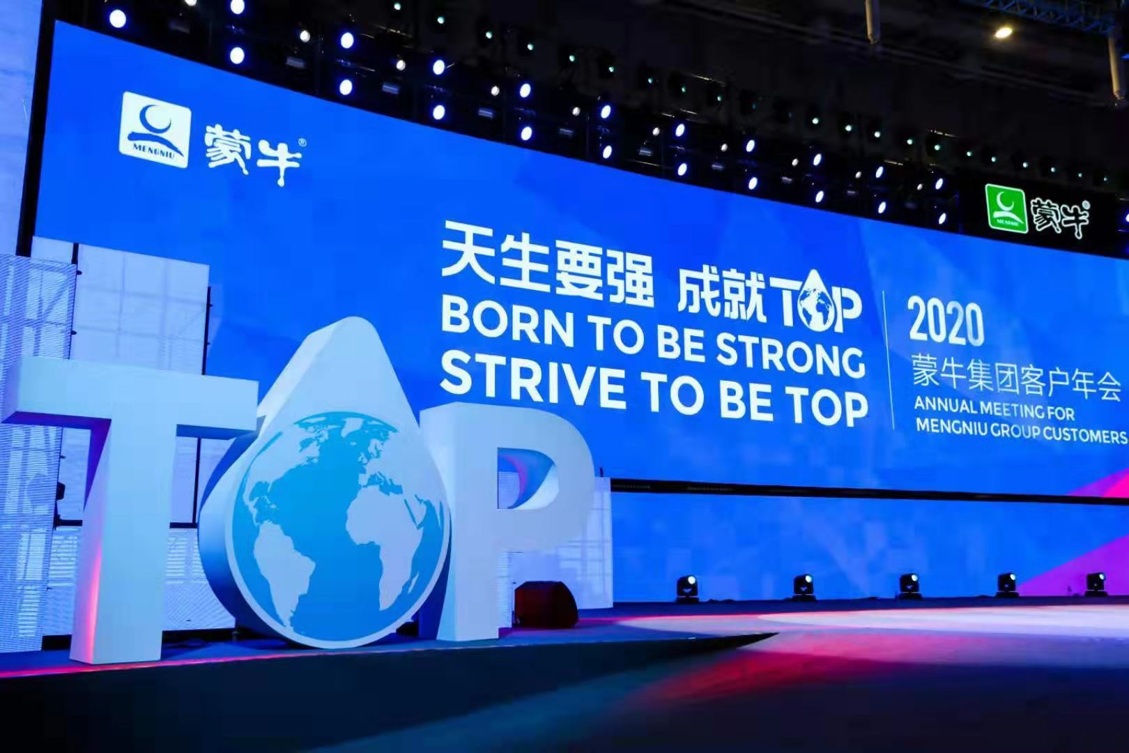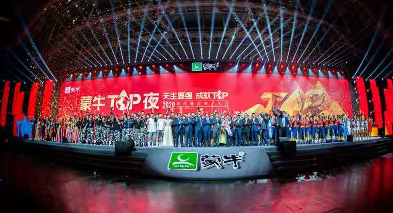 蒙牛TOP夜中,以《沖上云霄》為開場節目,民族舞曲、悠揚舞蹈、澎湃舞曲點燃了在場氣氛,更有神曲串燒展現企業各區負責人的活力風采。