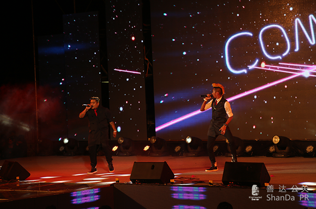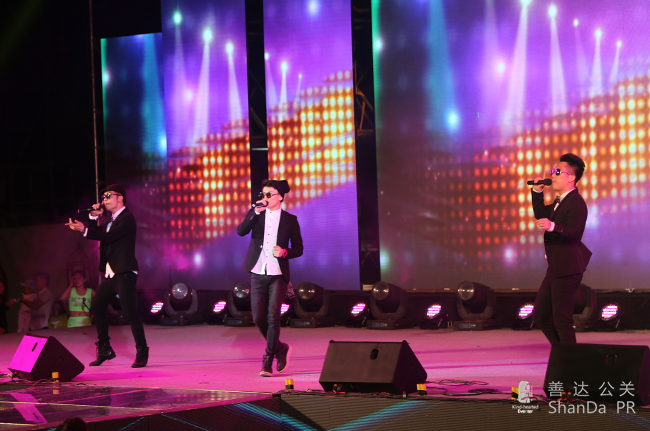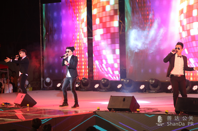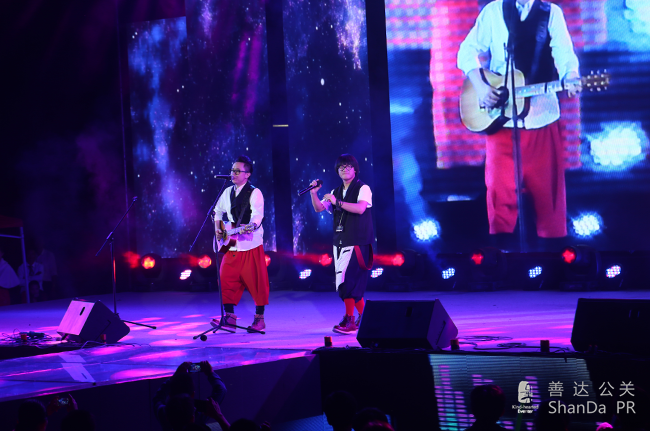 ,除了白天的隆重儀式,還有晚上的文藝晚會,特邀嘉賓有蘑菇兄弟、玖月奇跡等明星到場祝賀。
