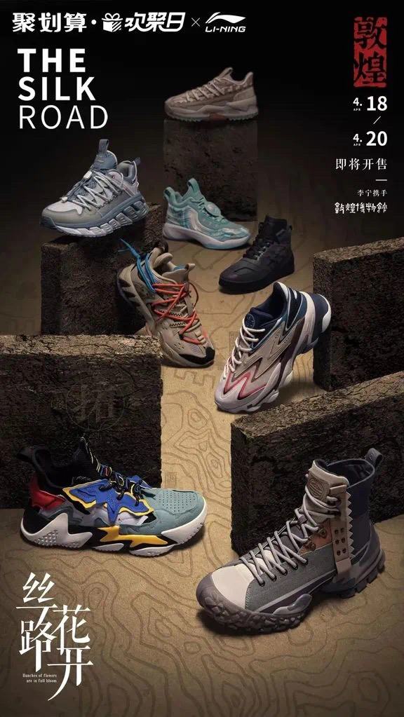 這次活動(dòng)主要以絲綢之路為節(jié)點(diǎn),通過挖掘歷史故事來傳達(dá)獨(dú)特的西域文化,讓李寧品牌與敦煌博物館的文創(chuàng)產(chǎn)品相融合,彰顯品牌的文化魅力。