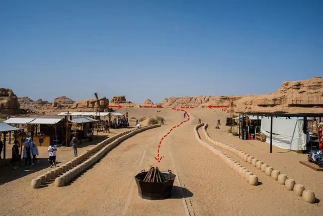 主辦方以“集市”為主線,在沙漠之上為到訪者搭建活動(dòng)之地,讓到訪的來客可以盡情在此飲茶。來到這里,你可以瞬間感覺自己穿越千年,仿佛來到“新龍門客棧”,刀光劍影在此上演。
