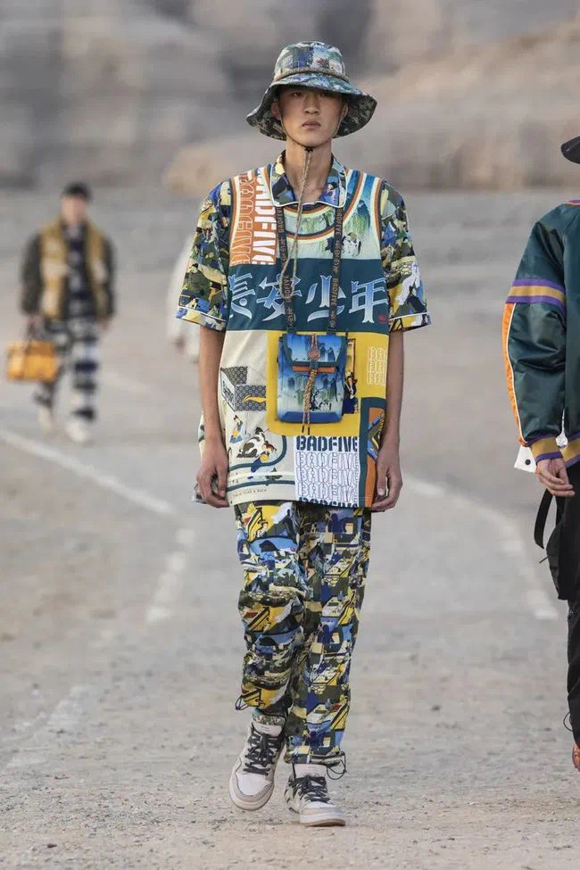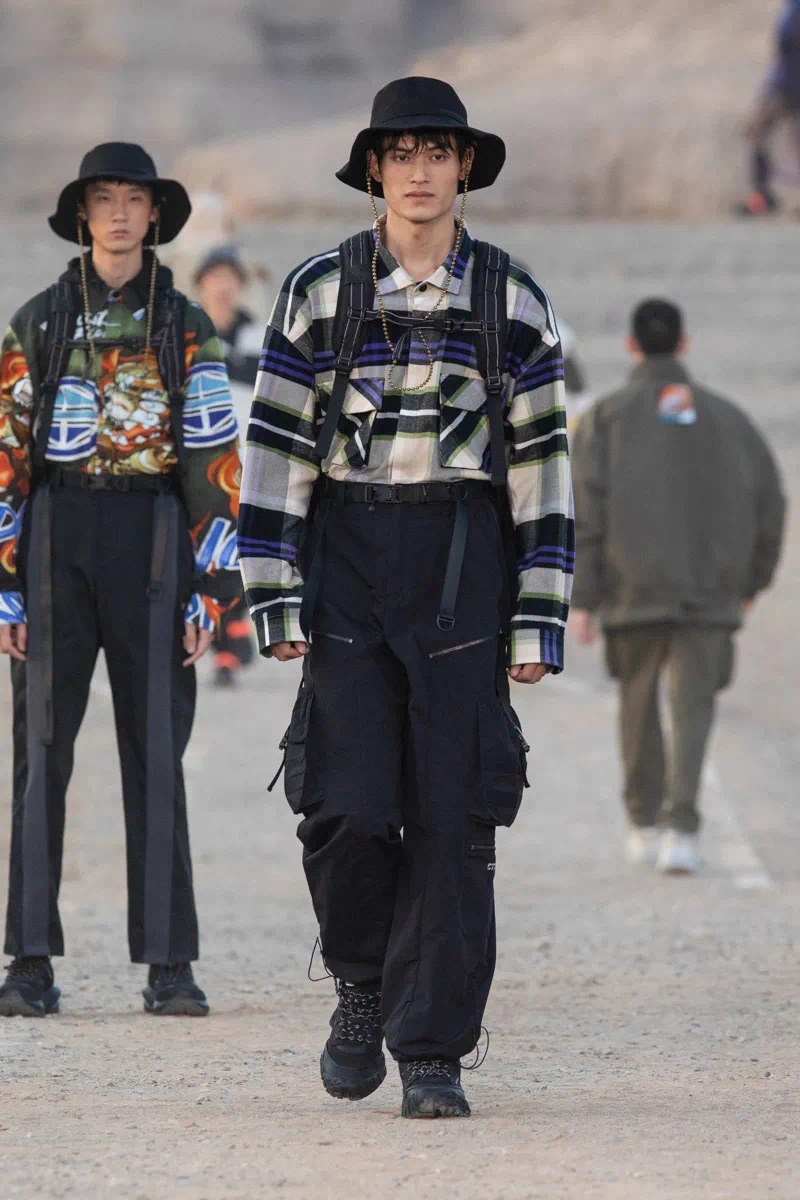 “絲路探行”系列通過“補(bǔ)丁”等設(shè)計(jì),充分體現(xiàn)了行者的艱苦樸素,堅(jiān)毅勇敢的精神。這個(gè)系列的服飾還通過各種不規(guī)則感的模塊拼接,彰顯出少年年輕有為、意氣風(fēng)發(fā)的精神面貌。
