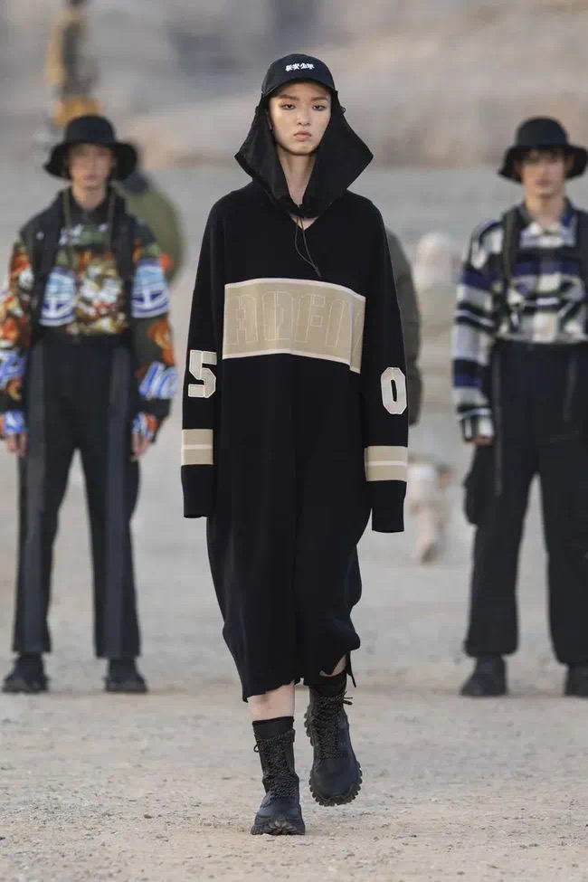 品牌主辦方選擇的地點(diǎn)是一望無際的黃色沙丘,這就是為人所熟知的“雅丹魔鬼城”,受風(fēng)蝕作用形成的影響,形成了獨(dú)特的地質(zhì)奇觀。而這一片黃色沙丘也成為了李寧品牌的“新絲路”。