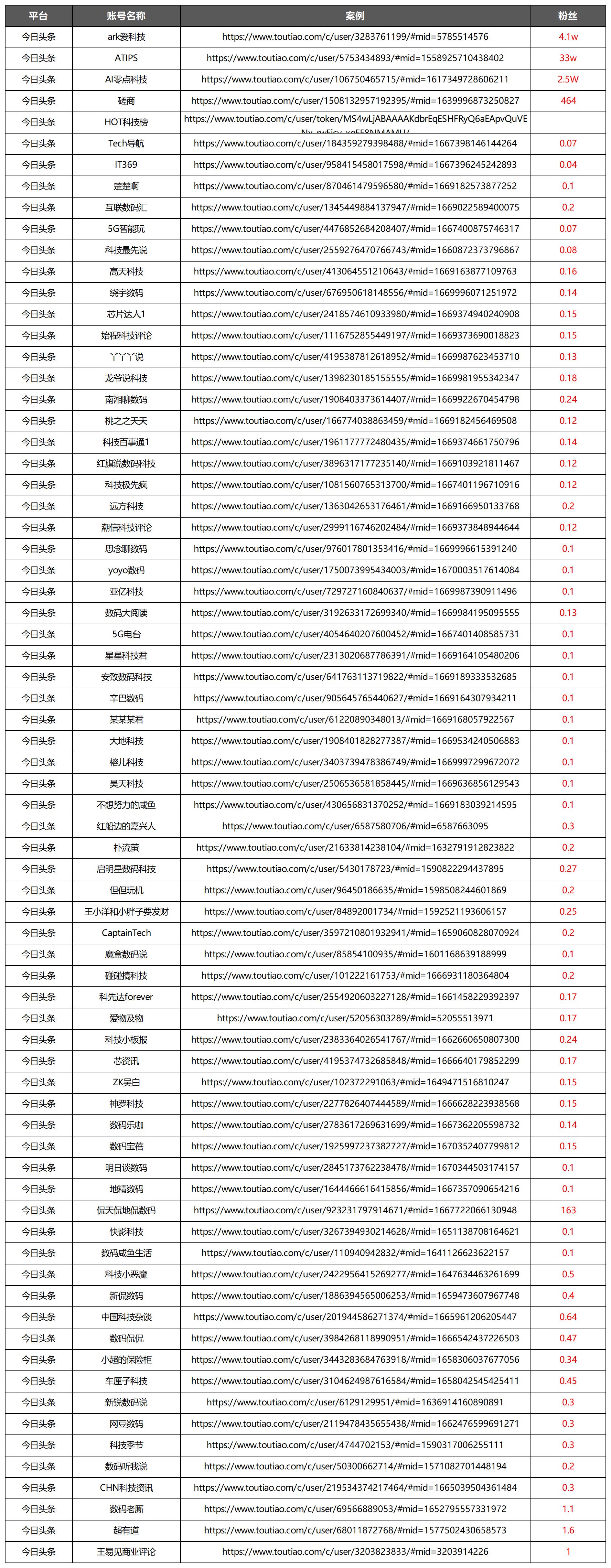 科技類KOL自媒體資源